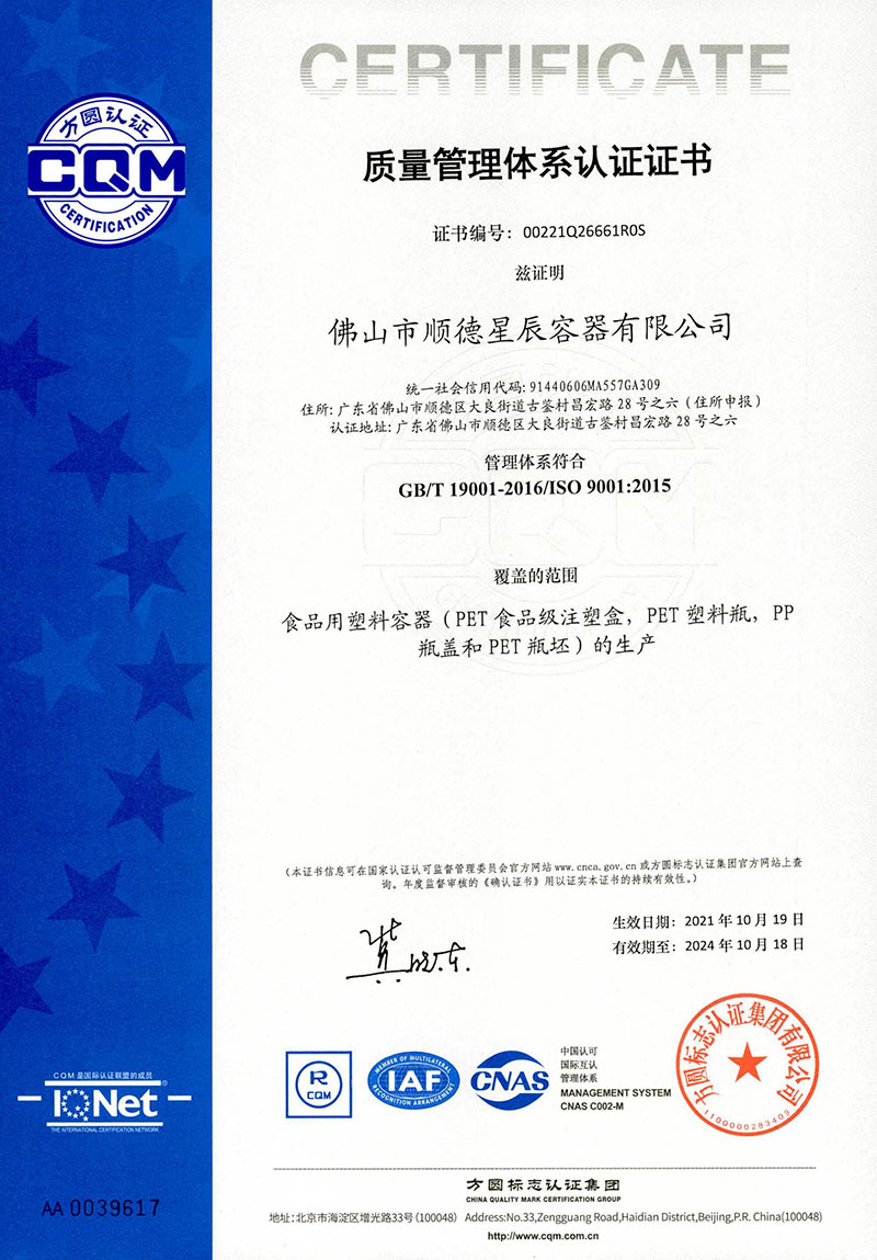 主要產(chǎn)品均以食品級(jí)全新PET為原材料,生產(chǎn)加工為PET注塑食品盒或PET瓶坯,塑料瓶是通過(guò)國(guó)家規(guī)定達(dá)到食品級(jí)要求空壓氣源吹制而成。成品通過(guò)高端機(jī)器設(shè)備 360°全方位無(wú)死角無(wú)盲區(qū)檢測(cè),并將有瑕疵的產(chǎn)品在線自動(dòng)剔除。此項(xiàng)技術(shù)改革避免了由傳統(tǒng)的依靠人手、目視及無(wú)統(tǒng)一的檢驗(yàn)標(biāo)準(zhǔn)、方法而造成良莠不齊的產(chǎn) 品等情況出現(xiàn)。